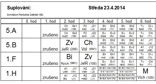 Rozvrh platný ve dnech 22. 4. a 23. 4. 2014