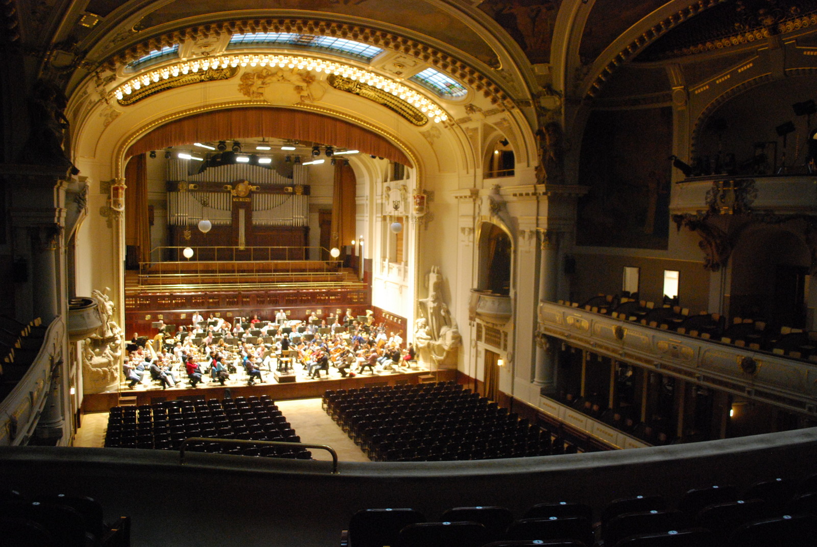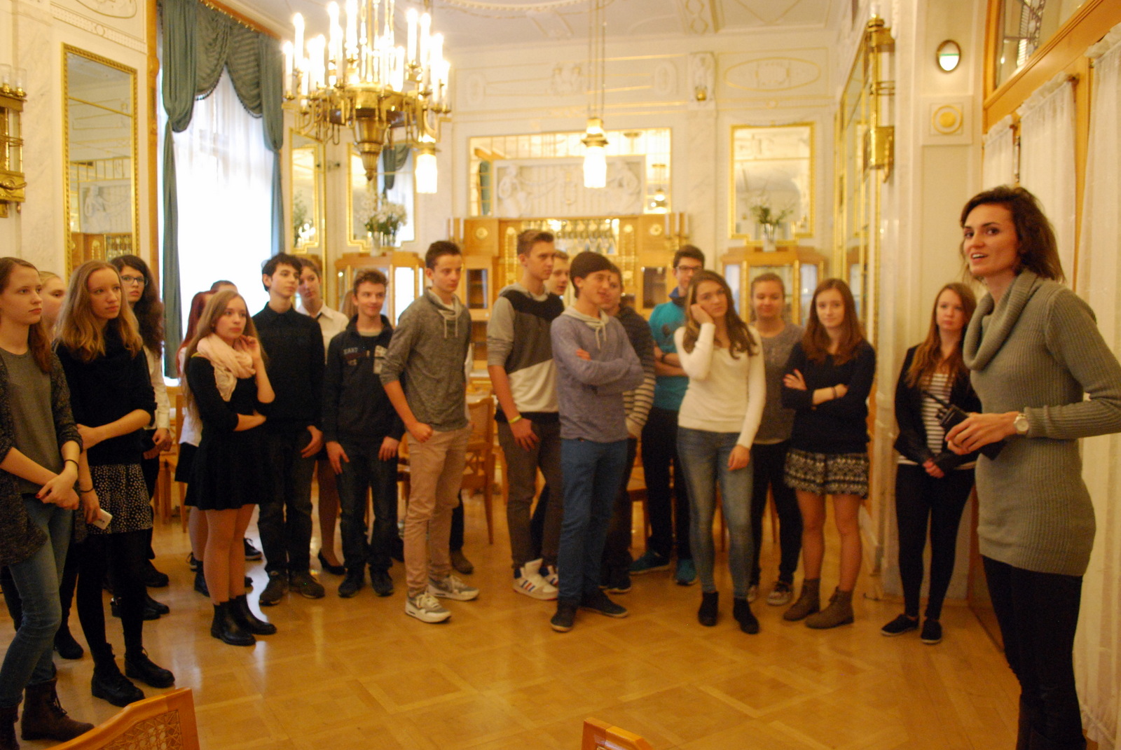 Studenti měli možnost nahlédnout s průvodkyní Janou Budkovou nejen do všech proslulých salónků a velké Smetanovy síně, ale nahlédli i do zázemí jednoho z největších českých orchestrů, jeho notového i nástrojového archivu aj. Pronikli i do atmosféry generální zkoušky a v závěru programu vyslechli několik děl komorní hudby v hudebním salónku v podání některých členů orchestru.