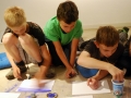 Po prohlédnutí místnosti jsme se přesunuli do prvního patra a tam si zkusili napodobit Gebauerovo dílo jménem Plavkyně. Všichni jsme se zděsili, že to bude moc těžké, ale naše obavy byly zbytečné. Vzali jsme si houbičku, potřeli jsme papír vodou, poté jsme barvou a suchou vyždímanou houbičkou začali „tisknout“ plavkyně.