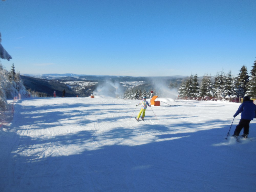 Během úterního dopoledne byl kompletně zkritizován náš styl jízdy a odpoledne nám byl vysvětlen smýkaný a řezaný oblouk. Všichni to úplně pochopili. 🙂 Ale jinak se máme úžasně, napadl metr sněhu, takže máme v čem chladit pití. 🙂