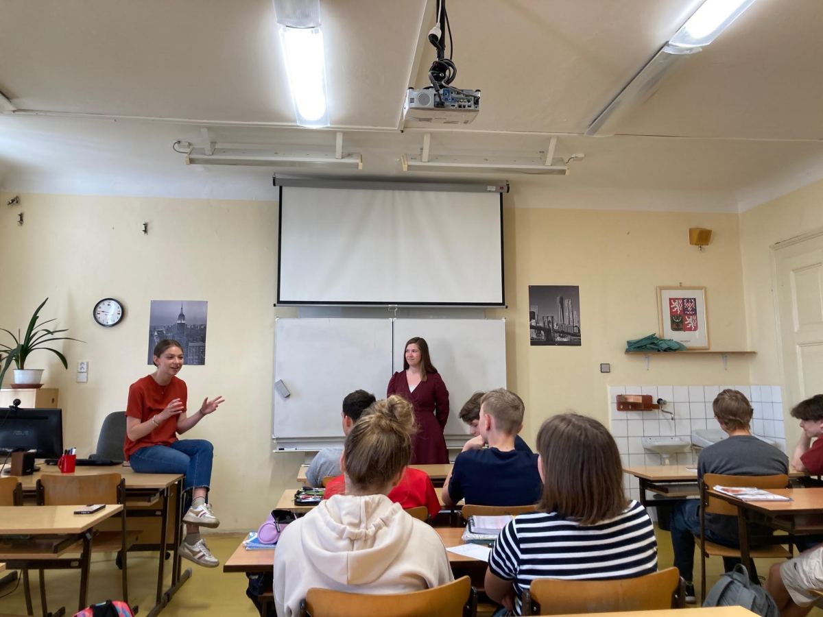 Ve středu dopoledne 15. 6. 2023 naše Fulbright asistentka ve výuce AJ Anna Zittle a její mentorka navštívily Gymnázium Josefa Ressela v Chrudimi. Na chrudimském gymnáziu totiž tento školní rok působí další Fulbright asistentka Lily Shorney. Anna a Lily se zúčastnily dvou vyučovacích hodin AJ, ve kterých se jich žáci mohli dotazovat na různé věci týkající se života v USA, kultury a stravování v USA. Žáci také kladli dotazy týkající se zážitků a zkušeností Fulbright asistentek v českém prostředí.