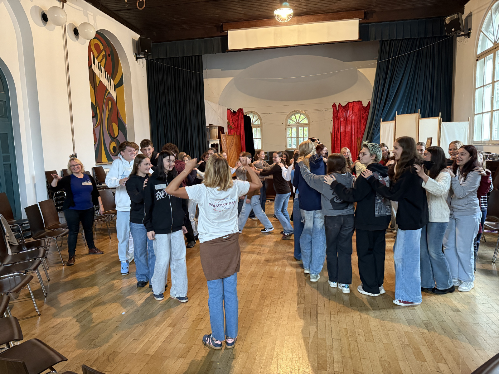 Další den jsme začali prohlídkou školy a potom jsme se šli podívat do vyučovacích hodin našich německých kamarádů. Dále jsme ochutnali oběd ve školní jídelně a po obědě nás čekala zábavná jazyková animace.