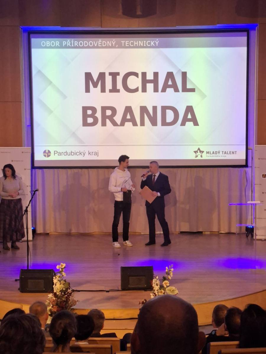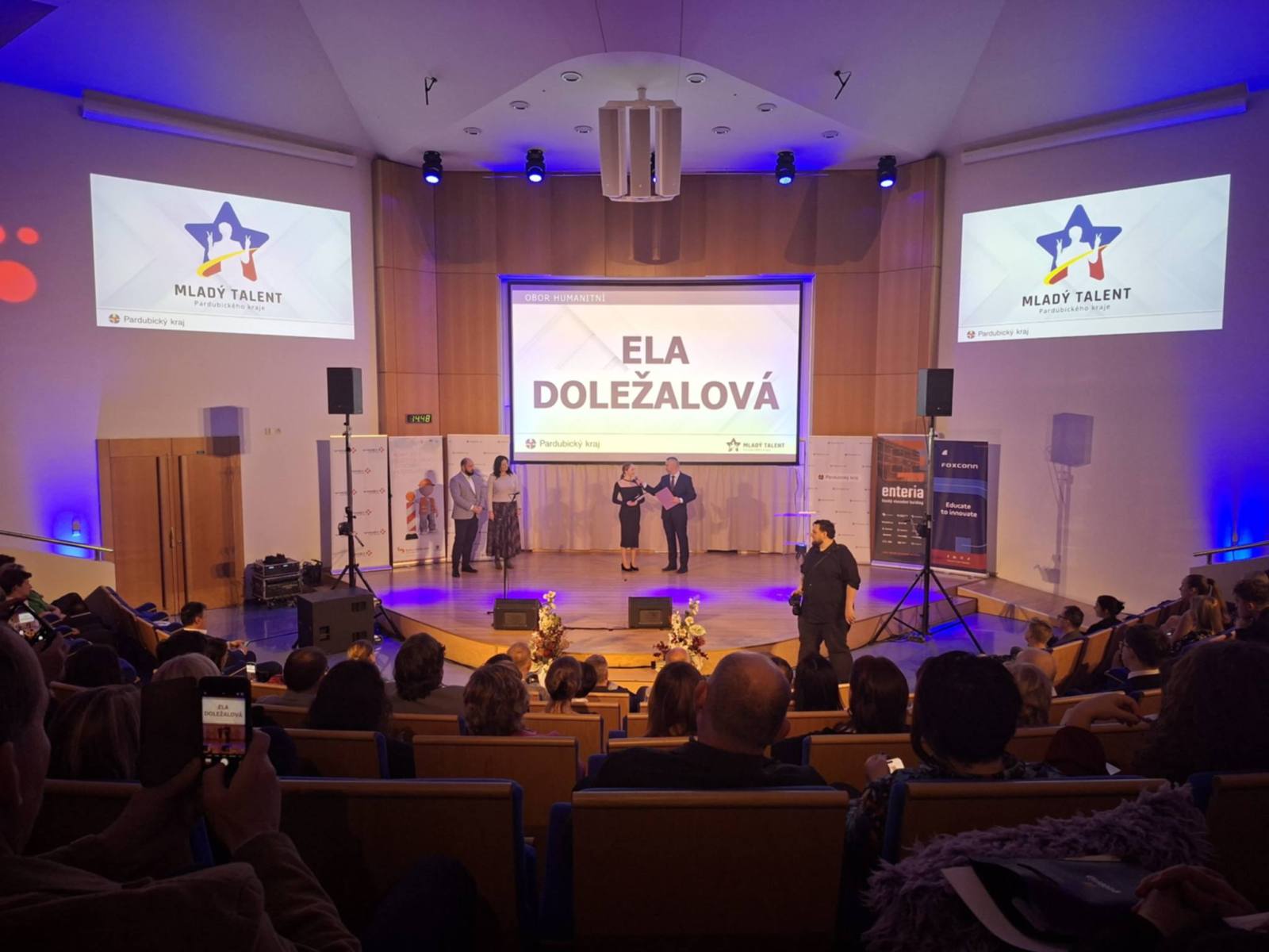 Ve středu 26. listopadu proběhlo v aule Univerzity Pardubice slavnostní předávání ocenění Mladý talent Pardubického kraje. Letos jsme měli hned dvojnásobný důvod k radosti. Toto prestižní ocenění získal náš absolvent Michal Branda a naše studentka Ela Doležalová.