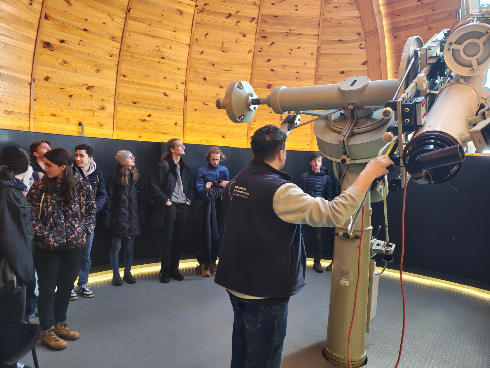 Ve středu 25. 2. 2026 se uskutečnila návštěva studentů semináře Astronomie a kosmické lety v planetáriu a hvězdárně v Hradci Králové. V planetáriu jsme zhlédli aktuální dění na obloze a pak film věnovaný vývoji vesmíru po velkém třesku. Na sousední hvězdárně jsme navštívili kopuli s dalekohledy, a protože bylo téměř jasno, mohli jsme pozorovat projekci Slunce přes velký Keplerův dalekohled.