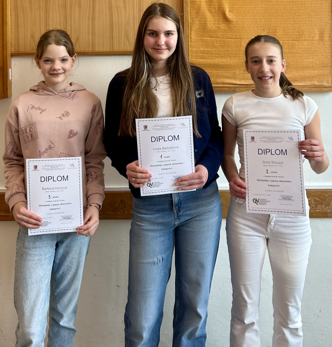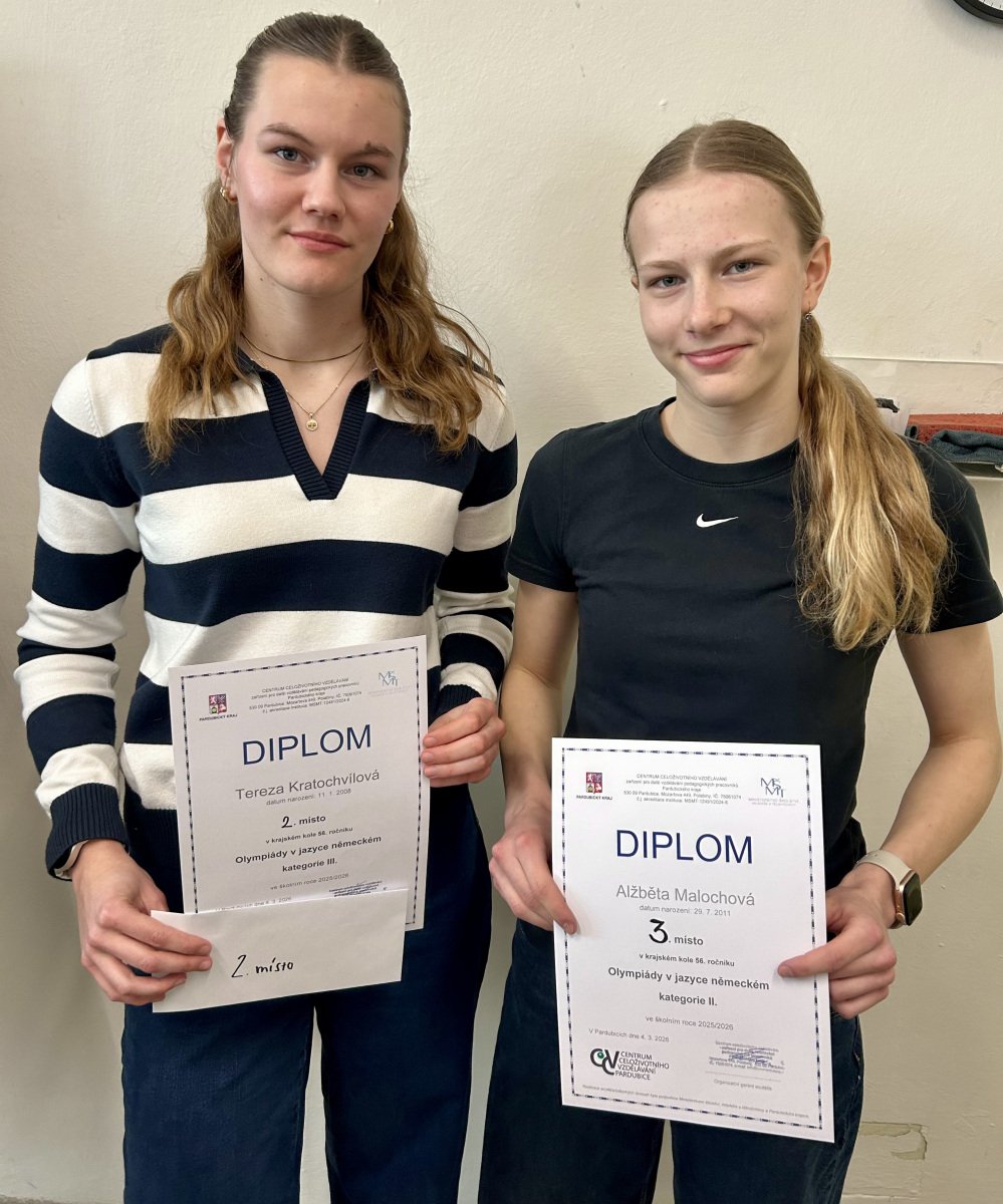 Ve středu 4.3.2026 proběhlo na našem gymnáziu okresní kolo Olympiády v německém jazyce pro kategorie I., II. a III. Ve všech kategoriích obsadily naše žákyně skvělé umístění a předvedly vynikající výkony.