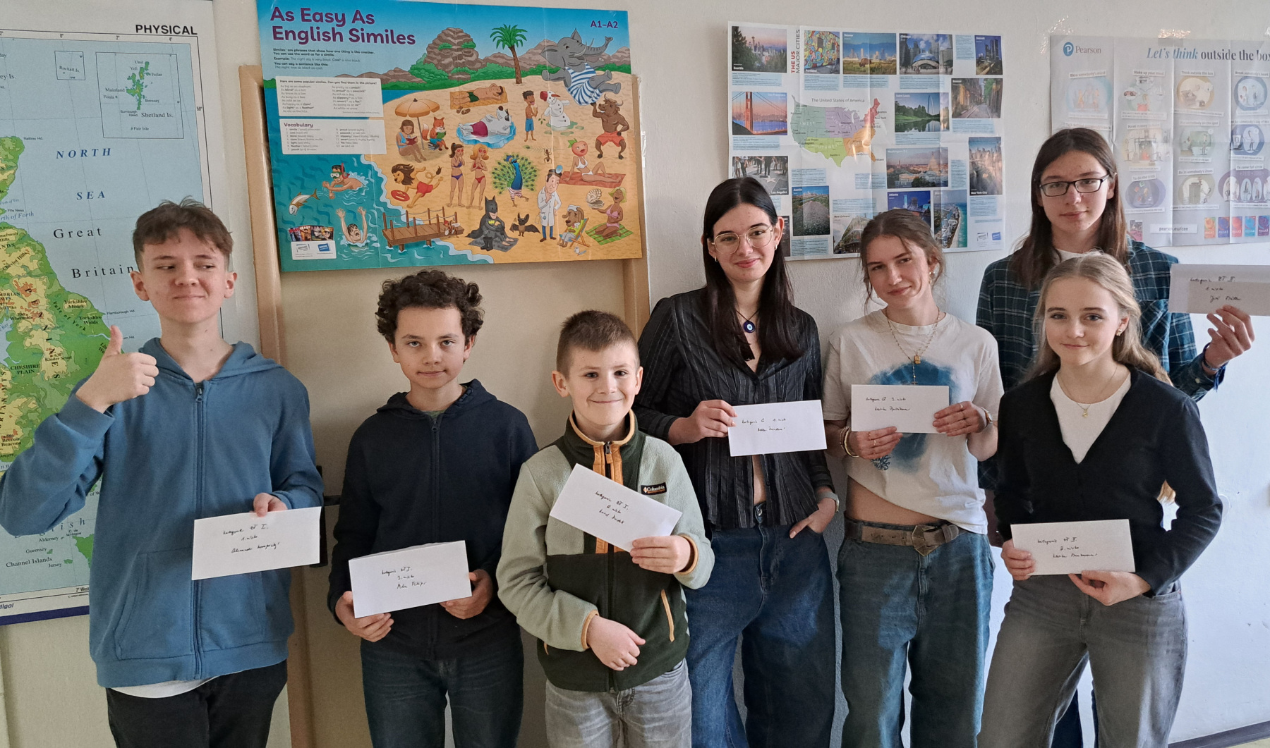 Všichni naši žáci postupující do okresních a následně krajských kol předvedli skvělé výkony v poslechové části, svou vynikající znalost angličtiny předvedli také v ústní části při konverzaci.