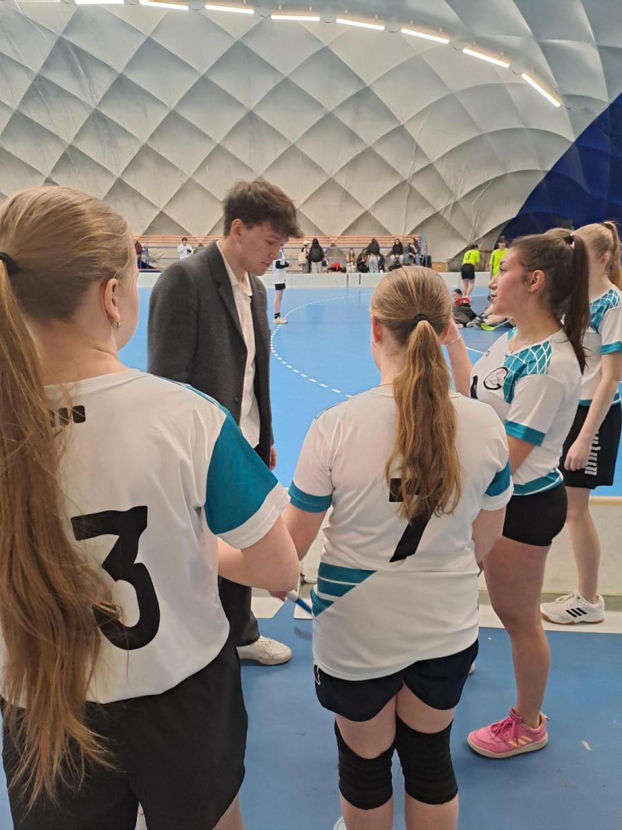 Děkuji také trenérovi Ondřeji Kubešovi (4.F), který se staral nejen o technicko-taktickou přípravu týmu, ale především o dobrou náladu v týmu a psychickou podporu všech hráček.